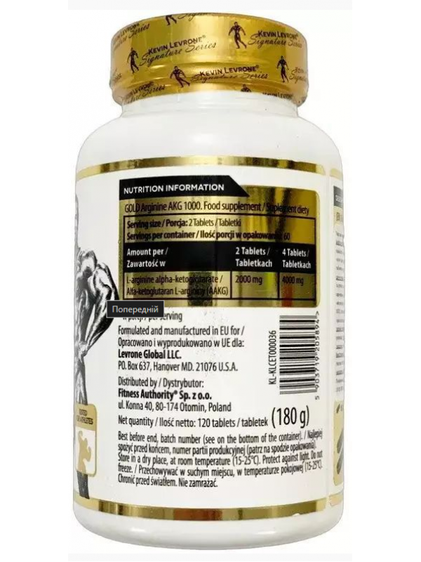 Kevin Levrone Gold Arginine AKG 1000 - Каждая таблетка содержит высокую концентрацию L-аргинина альфа-кетоглютарата (AKG), которая играет важную роль в поддержании энергетического обмена, мышечной массы и восстановлении после тренировок.