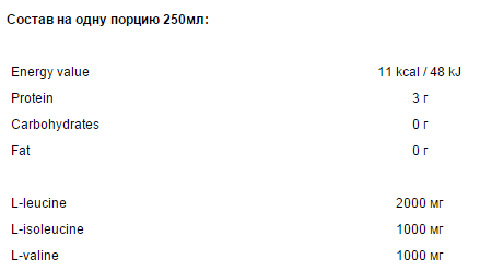 - набор L- витаминов (лейцин 2,5 г., валин 1,25 г., изолейцин1,25 г., глютамин 3,5 г).