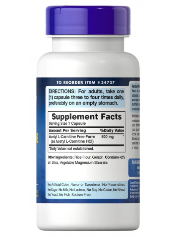 Puritan's Pride Acetyl L-Carnitine 500 mg (60 капс.)