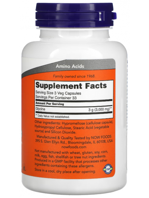 NOW Glycine 1000mg (90 капс.)