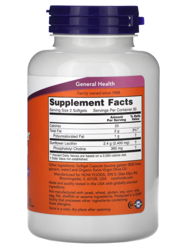 NOW Sunflower Lecithin 1200 mg (100 капс.)