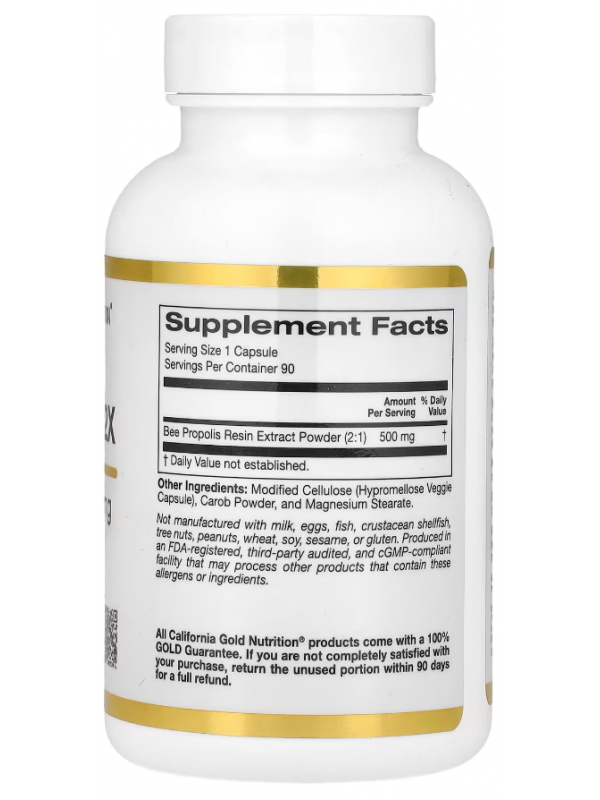Состав California Gold Nutrition Bee Propolis 2X 500 mg, 90 капс.,