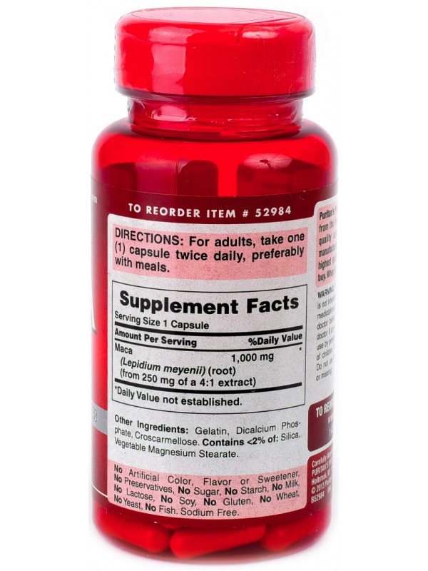Состав и инструкция Puritan's Pride Maca 1000mg, 60 капс,