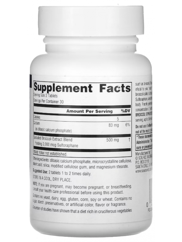 Состав Source Naturals Broccoli Sprouts, 60 таб,