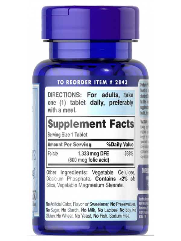 Для укрепления иммунной системы, безопасного протекания беременности, восполнения недостатков рациона можно купить Puritan's Pride Folic Acid 800 mcg (250 таб.) в магазине Motornutrition. Здесь представлен широкий ассортимент витаминных пищевых добавок, качество которых подтверждено в ходе независимых научных исследований.